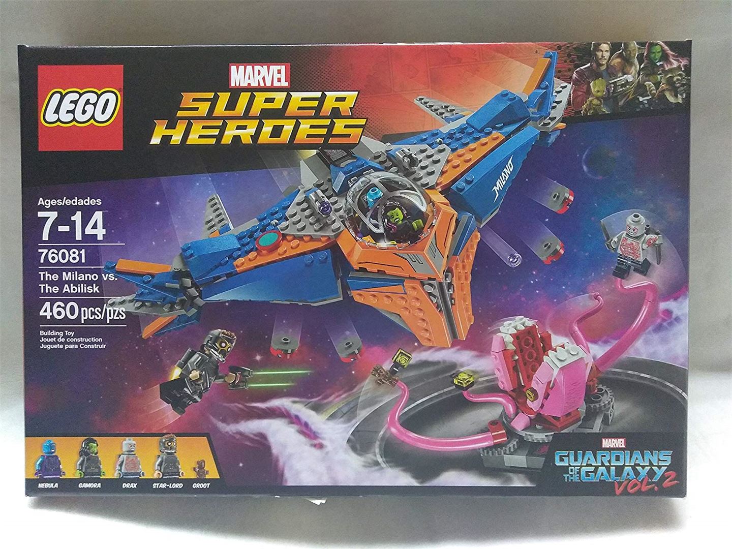 Machen Sie sich bereit für eine epische Weltraumschlacht, während Star-Lord und seine unwahrscheinlichen Verbündeten gegen den Abilisk antreten, mit dem Raumschiff Milano mit zwei Bolzenschützen, Bombenabwurffunktion, beweglichen Flügeln und einem offenen vierstelligen Cockpit. Das Abilisk-Monster verfügt über bewegliche Tentakel und einen sich öffnenden Mund, um eine mutige Rettungsmission zu spielen. Enthält vier Minifiguren und eine Groot-Figur. Baue die epische Raumschlacht zwischen Star-Lord und seiner Crew und dem Abilisk-Monster! Mit Einstellungen und Charakteren aus Marvel's Guardians of the Galaxy Vol. 2. Enthält Minifiguren von Star-Lord, Gamora, Nebular und Drax sowie eine Groot-Figur. LEGO Super Heroes Bauspielzeug ist kompatibel mit allen LEGO Bausätzen für kreatives Bauen. Der Milano ist über 3" hoch, 7" lang und 14" breit. Der Abilisk misst über 2" hoch, 3" breit und 7" tief. 460 Stück - Für Jungen und Mädchen im Alter von 7 bis 14 Jahren