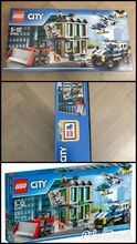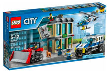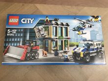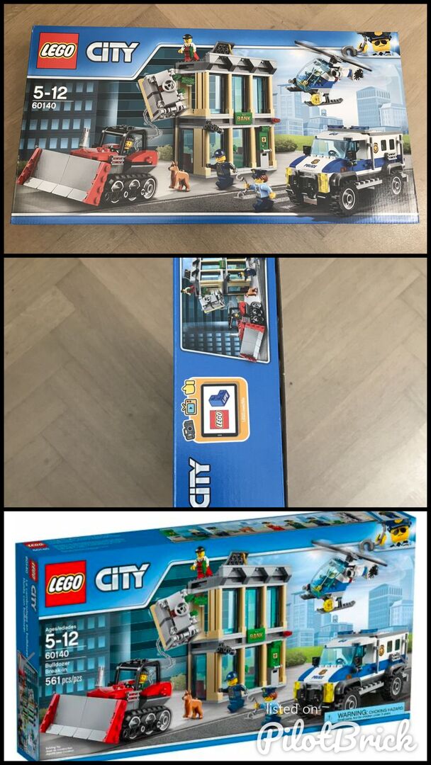 Lego Set - 60140 - Stadt - Bulldozer Break-in Unbenutzt - In unbeschädigter und versiegelter Originalverpackung LEGO CITY 60140 - Bankraub mit Planierraupe Neu/Original verpackt LEGO CITY 60140 BANKRAUB MIT PLANIERRAUPE Nagelneu / ungeöffnet in der Originalverpackung Benutze den Polizeihubschrauber und den Polizeitransporter, um die Ganoven daran zu hindern, den Banktresor und den Geldautomaten herauszureißen. Das Set enthält außerdem eine Planierraupe, Zubehörteile, fünf Minifiguren und eine Polizeihundfigur. Beschütze die Bank und halte die Ganoven auf! Ruf die Sicherheitsleute, die Ganoven haben es auf die Bank abgesehen! Lade die Ausrüstung in den Polizeitransporter und fordere den Hubschrauber mit dem Suchscheinwerfer an, um den Schauplatz des Geschehens gut auszuleuchten. Halte nach der Planierraupe der Ganoven Ausschau, die versuchen, den Tresor aus der Wand zu reißen! Versuche, die Ganoven mit der Polizei, dem Polizeihund und dem Sicherheitspersonal zu umstellen, um den Einbruch zu stoppen und die Beute sicherzustellen! Stürze dich mit der LEGO City Polizei ins Action-Getümmel und beschütze den Tresor und den Geldautomaten der Bank vor den Ganoven und ihrer Planierraupe. Hierzu enthält das Set einen Polizeitransporter voller Ausrüstung, einen Hubschrauber mit Suchscheinwerfer und drehenden Rotoren sowie die Planierraupe der Ganoven mit Ketten und Haken. Enthält fünf Minifiguren sowie eine Polizeihundfigur. Enthält fünf Minifiguren: einen Polizisten, einen Piloten, einen Sicherheitsexperten und zwei Ganoven sowie eine Polizeihundfigur. Mit Bankgebäude, Hubschrauber, Transporter und Planierraupe. In dem zweigeschossigen Bankgebäude gibt es einen Tresor und einen Geldautomaten, die beide aus den Wänden gerissen werden können. Im Erdgeschoss befinden sich ein Wartebereich, eine aufklappbare Vordertür und ein Bankschalter. Im Obergeschoss gibt es eine aufklappbare vergitterte Sicherheitstür, und an der Seite des Gebäudes befindet sich ein Abflussrohr, an dem hinaufgeklettert werden kann, um durch eine Falltür im Dach in die Bank zu gelangen. In dem Tresor gibt es zwei Fächer für Geldscheine, und die Rückseite des Geldautomaten kann geöffnet werden, um Geldscheine aufzufüllen. Der Polizeitransporter verfügt über aufklappbare Hecktüren und eine Heckladefläche für Ausrüstung. Die Planierraupe ist mit einem Frontplanierschild, beweglichen Ketten, einer Kette und einem Haken ausgestattet. Der Polizeihubschrauber verfügt über drehende Rotoren, einen schwenkbaren Suchscheinwerfer und ein Seil, an das sich eine Minifigur hängen kann. Klettere am Abflussrohr aufs Dach, um durch die Falltür in die Bank zu gelangen. Befestige den Haken und die Kette von der Planierraupe am Tresor, um ihn aus der Wand zu reißen. Das Zubehör umfasst vier Geldscheine, einen Becher, zwei Paar Handschellen, eine Taschenlampe, ein Stemmeisen und einen Hammer. Dieses Set bietet Kindern im Alter von 5 bis 12 Jahren ein altersgerechtes Bau- und Spielerlebnis. Die Bank ist 16 cm hoch, 13 cm breit und 6 cm tief. Der Hubschrauber ist 7 cm hoch, 16 cm lang und 13 cm breit. Der Polizeitransporter ist 8 cm hoch, 16 cm lang und 7 cm breit. Die Planierraupe ist 6 cm hoch, 11 cm lang und 7 cm