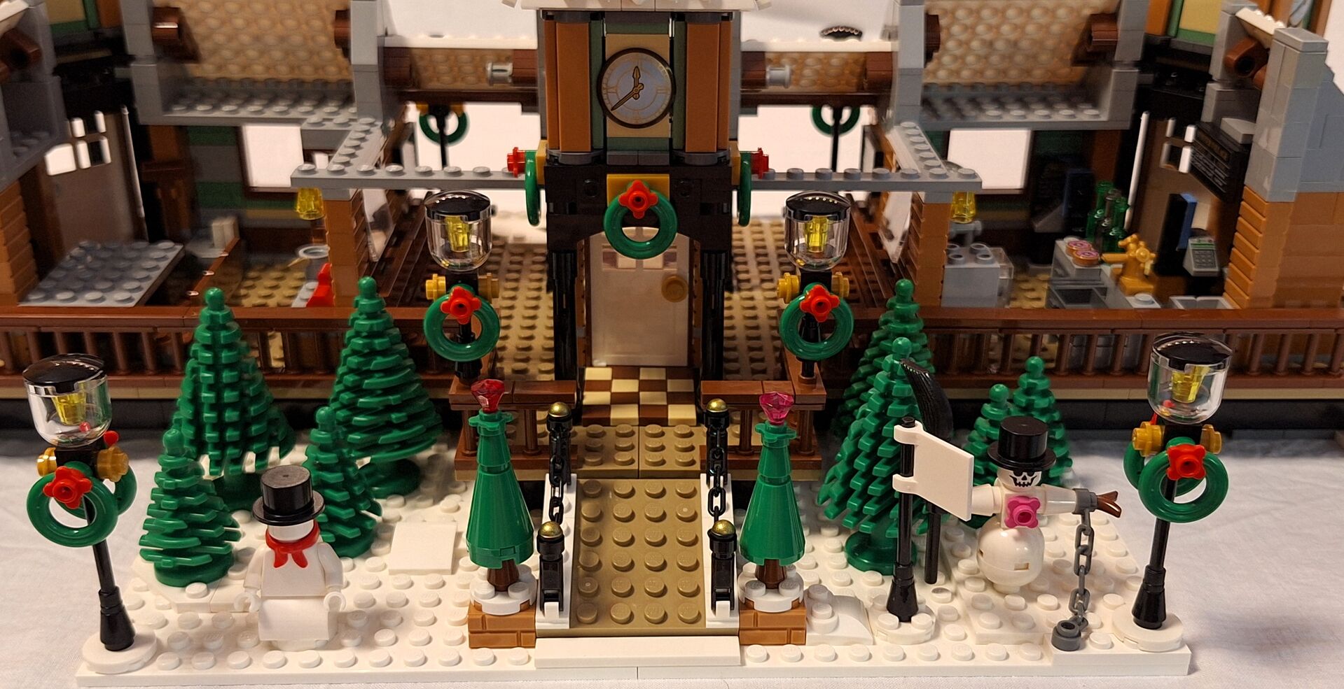 Alles muß raus, ich brauche Platz! Ich biete hier aus meiner Vitrinensammlung einen wunderschönen Winterbahnhof von Lego an. Basis dafür waren drei Bausätze 10259 und jede Menge zusätzlicher neuer Lego Steine, daher ist dieser Bahnhof auch einzigartig! Es ist alles neu und unbespielt, wurde nur zusammengebaut und in einer Vitrine ausgestellt. Nichtraucher und tierfreier Haushalt! Preis 590.- Artikel wie am Foto abgebildet stehen zum Verkauf, nicht im Handel erhältlich, keine OVP!!! Laut EU-Recht ist dies ein Privatverkauf, daher keine Garantie, Rücknahme, sonstige Gewährleistungen oder Nachverhandlungen. Der Käufer erklärt sich ausdrücklich damit einverstanden!!!
