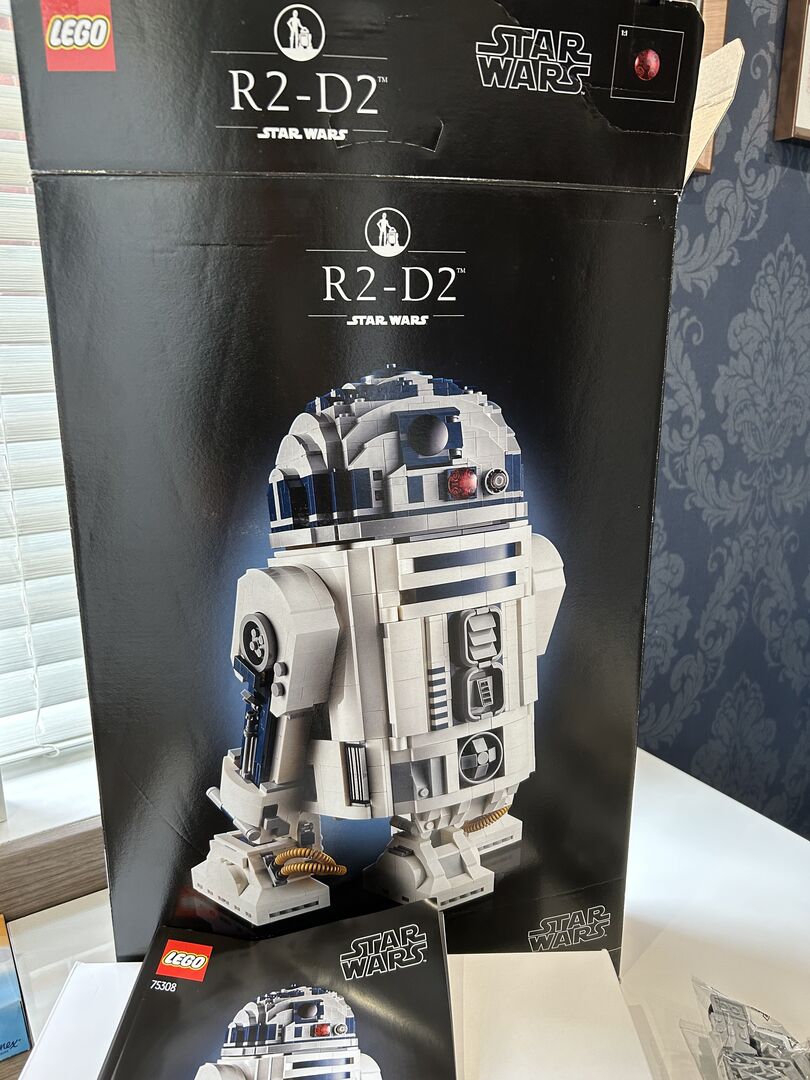 Star Wars R2 D2 Unerwünschtes Weihnachtsgeschenk - die Schachtel wurde geöffnet, ist aber in gutem Zustand und alle Legosteine sind noch in versiegelten Beuteln, komplett mit Anleitungsbuch.